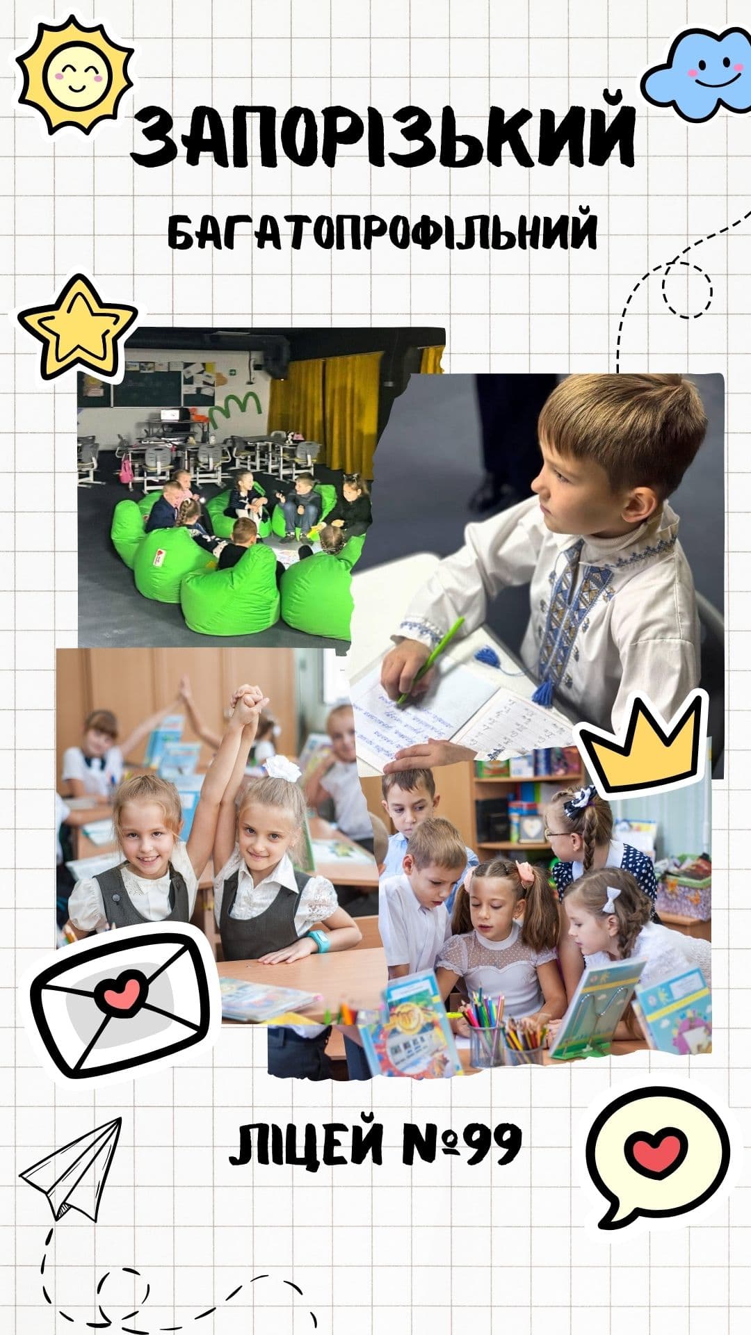 Запорізький багатопрофільний ліцей 99 оголошує набір майбутніх першокласників на безоплатні підготовчі курси “Кроки до школи”.